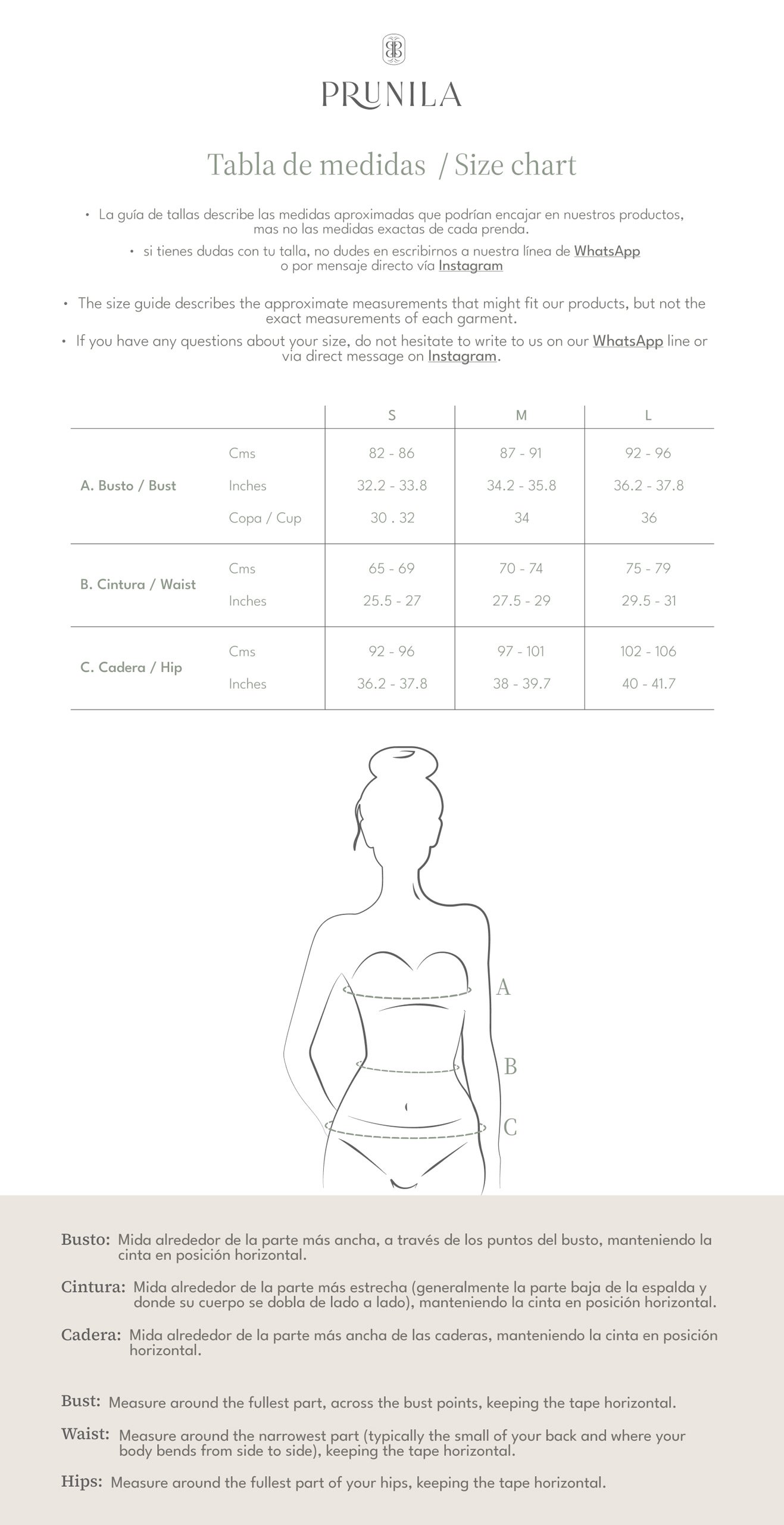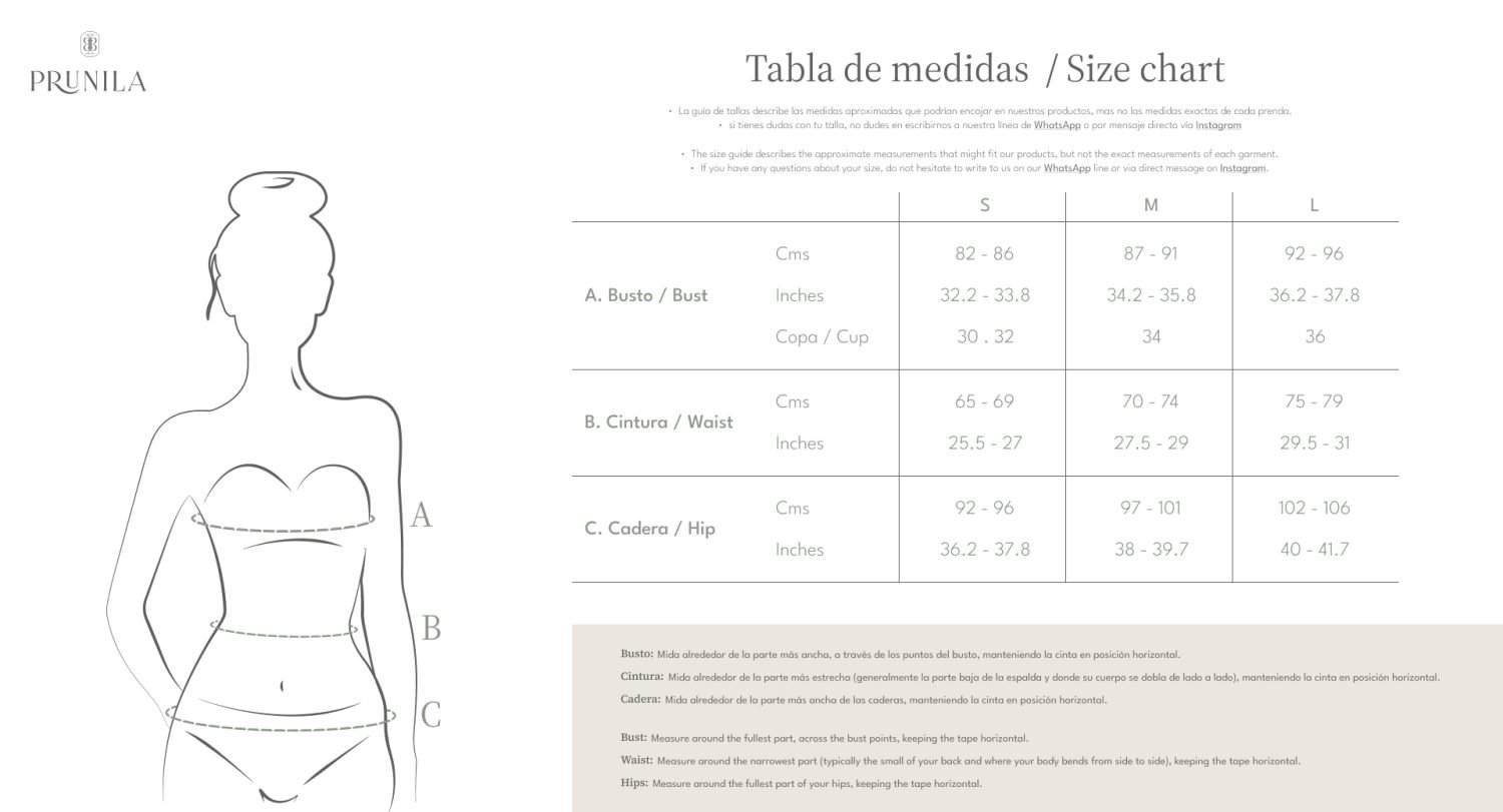 • Recordar: la talla seleccionada será para el bralette ya que la tanga es ajustable a cualquier talla.